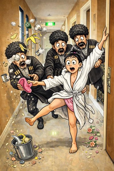 А там такая система, я одной рукой открываю дверь в мусоропроводную, держу ее снизу ногой, теперь сумка с мусором в одной руке, второй открываю шахту, ногой значит держу дверь, шлЁпок на мокрой ноге сползает, закидываю мусор в мусоропровод, начинаю терять равновесие, открывается дверь лифта, оттуда выходят соседи грузины три штуки, халатик развязывается, я в позе Христа, начинаю понимать, что надо что-то ловить, убираю ногу, соскальзывает шлепок. Я, что бы не подвернуть ногу, подкидываю шлепок наверх и ловлю его пальцами ног, про халатик на секунду забываю, но не забываю улыбаться соседям, и вуаля... стою я посреди коридора, голая, жонглируя шлепком, с мокрыми волосами, в халатике, но халатик уже так номинально только по бокам красиво развивается, улыбка до ушей, соседи же, я с канадской улыбкой говорю "Хелоу!", и три грузина охуевшие до полнейшего остолбенения. И короче, я такая быстренько все завязала, как будто это так и надо, и обратно пошла к себе. Дошла до двери, один из них громко, но грустно так говорит: "Грудь красивая". А второй с надеждой: "А у нас хинкали есть!". И мне бы промолчать, но я с одесским акцентом: "Д я вас-таки умАляю, это ж разве грудь? Это слезы младенца." И дверь закрыла и шальная мысль - хорошо что я чистая!